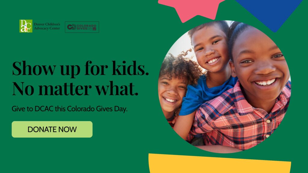 Your Colorado Gives Day donation to Denver Children’s Advocacy Center goes directly to support our work to prevent abuse, strengthen families, and restore childhood.